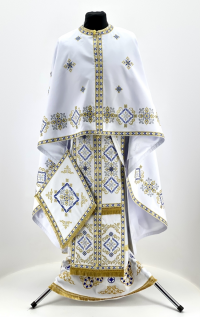 Облачення священника грецький крій, вишите французьким хрестиком на габардині з вишитим галуном